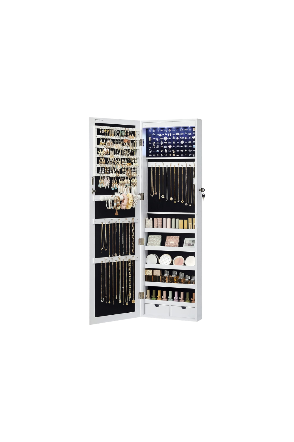 SONGMICS 6 LEDs Mirror Jewelry Cabinet