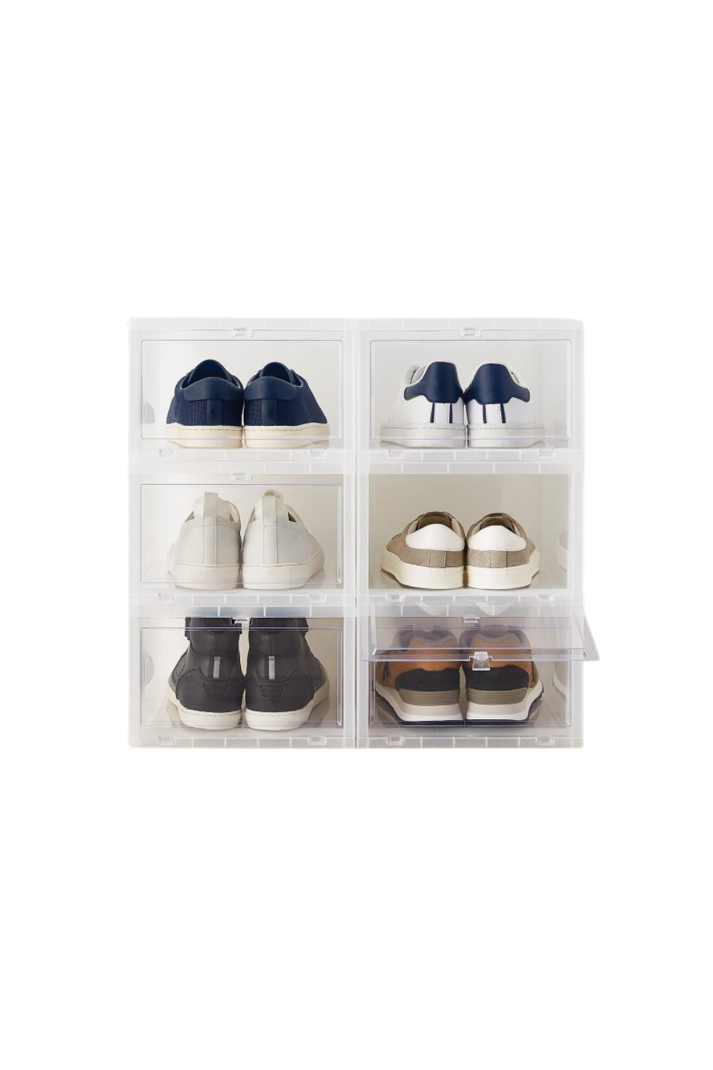 Keep shoes dust-free with these stacking drop-front shoe boxes. Available in multiple colors! Shop here