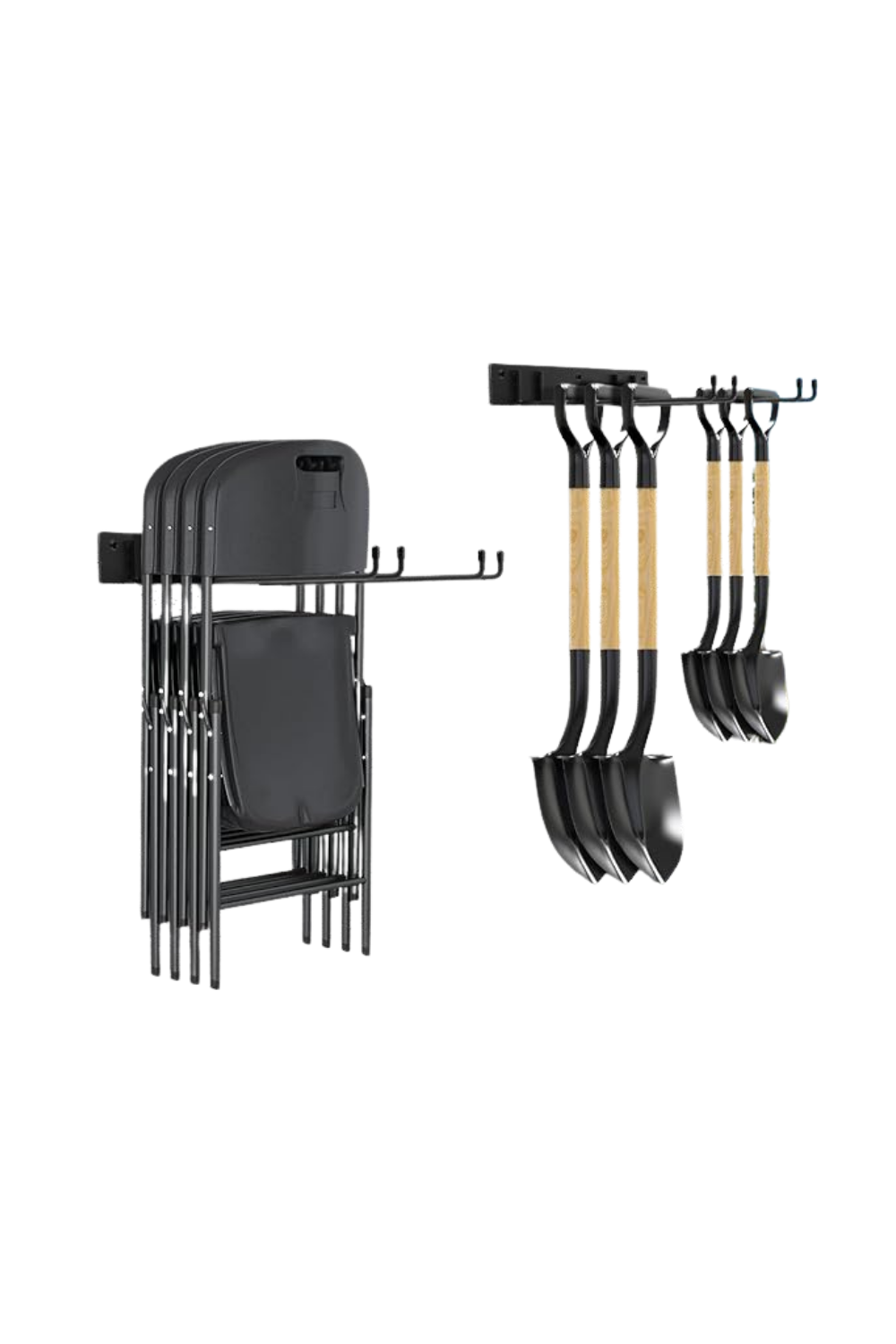 These wall-mount racks are great for folding chairs, shovels, rakes, and so much more! They can even hold up to 120lb! Shop here